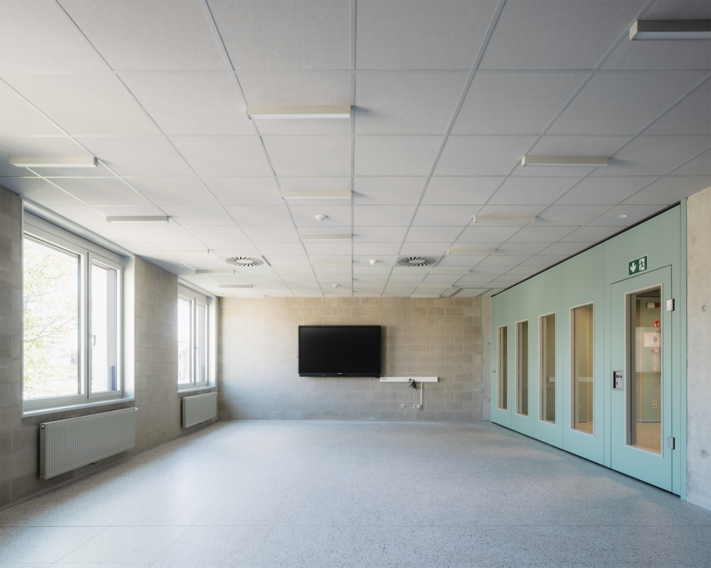Due to a rapidly growing number of students, Ecole 13 needed to expand. The existing school is situated in Sint-Jans-Molenbeek and is a textbook example of a 19th century school building with an inner street. At the street side a new building will replace the old municipal building. This extension has a modest architectural design and gives the school site a new identity with respect for the existing school building. The ground floor is opened up with glass to give the school a more inviting and transparent character and to connect the playground with the street. In contrast to the ground floor, the façade of the superstructure has a more massive appearance. The façade construction consists of a stack of concrete panels and is a visual nod to Mendeleev’s table. On the levels the classrooms are organized around a square circulation space. This space not only ensures circulation but also functions as a multifunctional space that encourages teaching beyond the classroom. On the playground is a canopy created that with its organic shape provides a playful answer to the physical protection of the children.