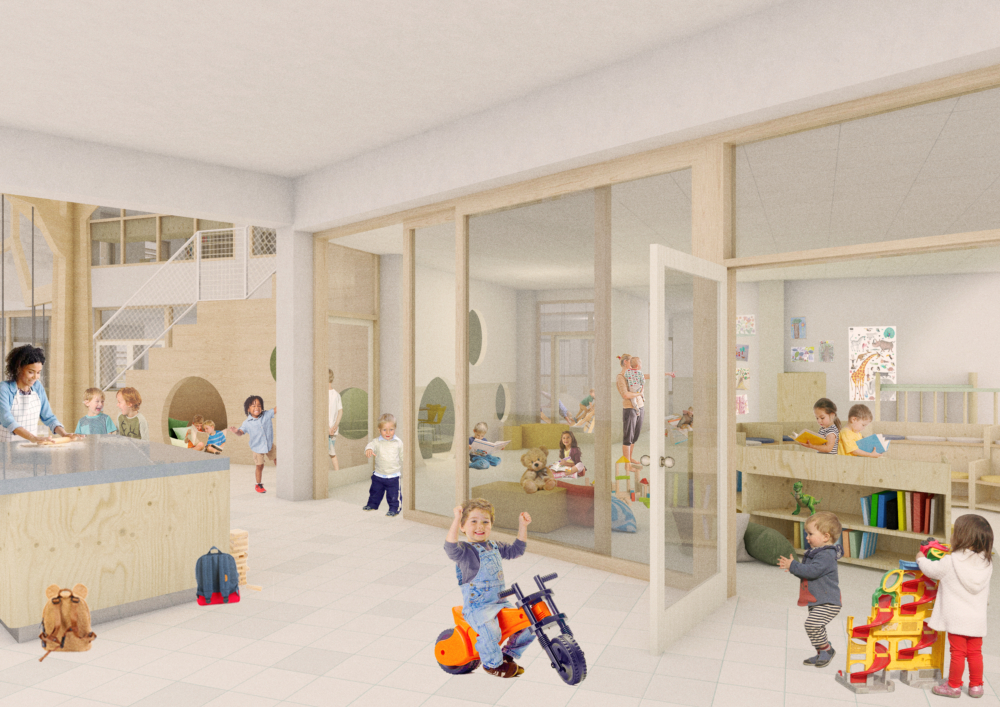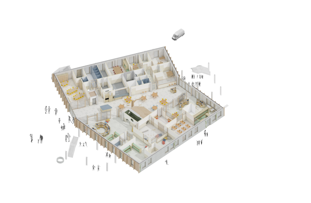 The existing infrastructure of GO! Leefschool Eureka was outdated and no longer suited to accommodate the growing number of students. The previous facilities, consisting of scattered pavilions and a kindergarten building, were in need of renewal and no longer met the school’s expanding needs. This led to the commission of a new, future-oriented design that not only supports the educational vision but also strengthens the interaction with the surrounding environment.