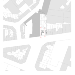 Door volumes aan de straatzijde te plaatsen worden de randen van het bouwblok weer hersteld. De diepte van het perceel laat toe om ook het binnengebied te activeren en een nieuw volume toe te voegen. Dit betekent een bijkomende uitdaging: de nieuwe volumes moeten zich verhouden tot deze bestaande scheimuren en er tegelijk kwalitatieve woon- en buitenruimtes rond organiseren.